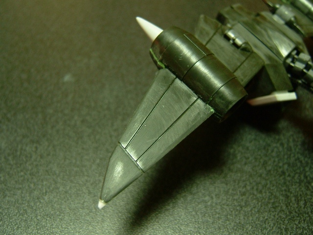 羽はプラ板を先端付近の下に貼り、その後アルテコ瞬着パテを