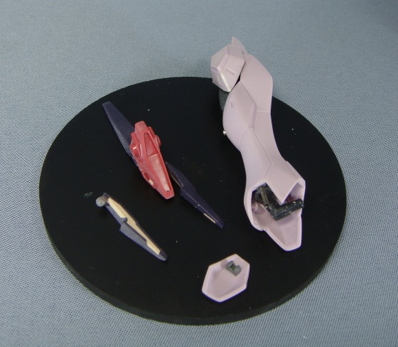 各部シャープ化、穴埋めスラスターのパテを削る時には100円ショップで