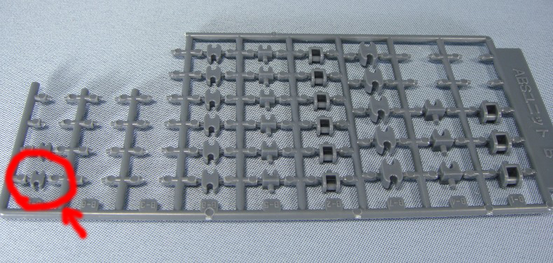 足首のカバーの可動化には赤丸で囲んだ部分を真っ二つに切って使用してます。