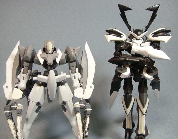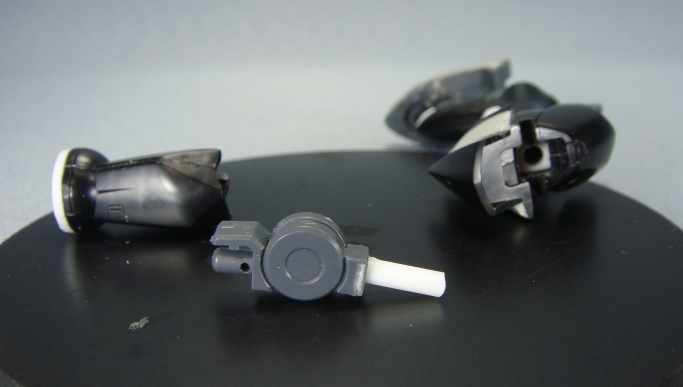 二の腕部分のPCと肘のグレーのパーツを削って1ミリほど幅詰め
