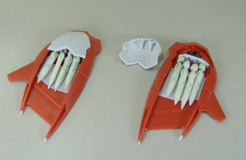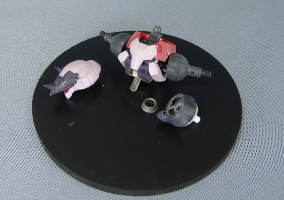 各部シャープ化、穴埋めスラスターのパテを削る時には100円ショップで
