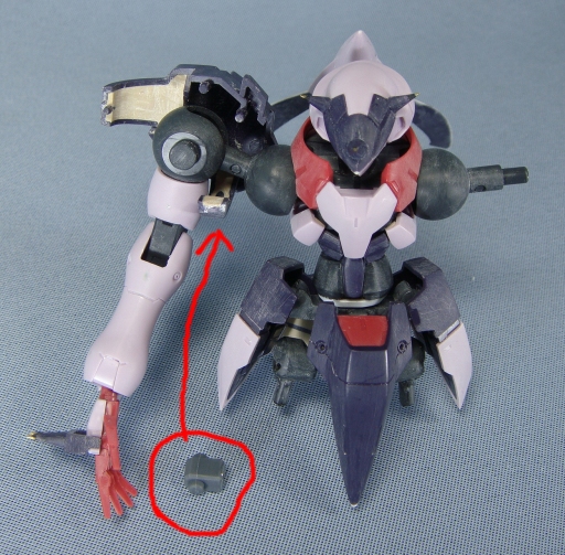 GNカッターのピンを切り飛ばして後ハメ、前腕の肘の隙間から見える部分